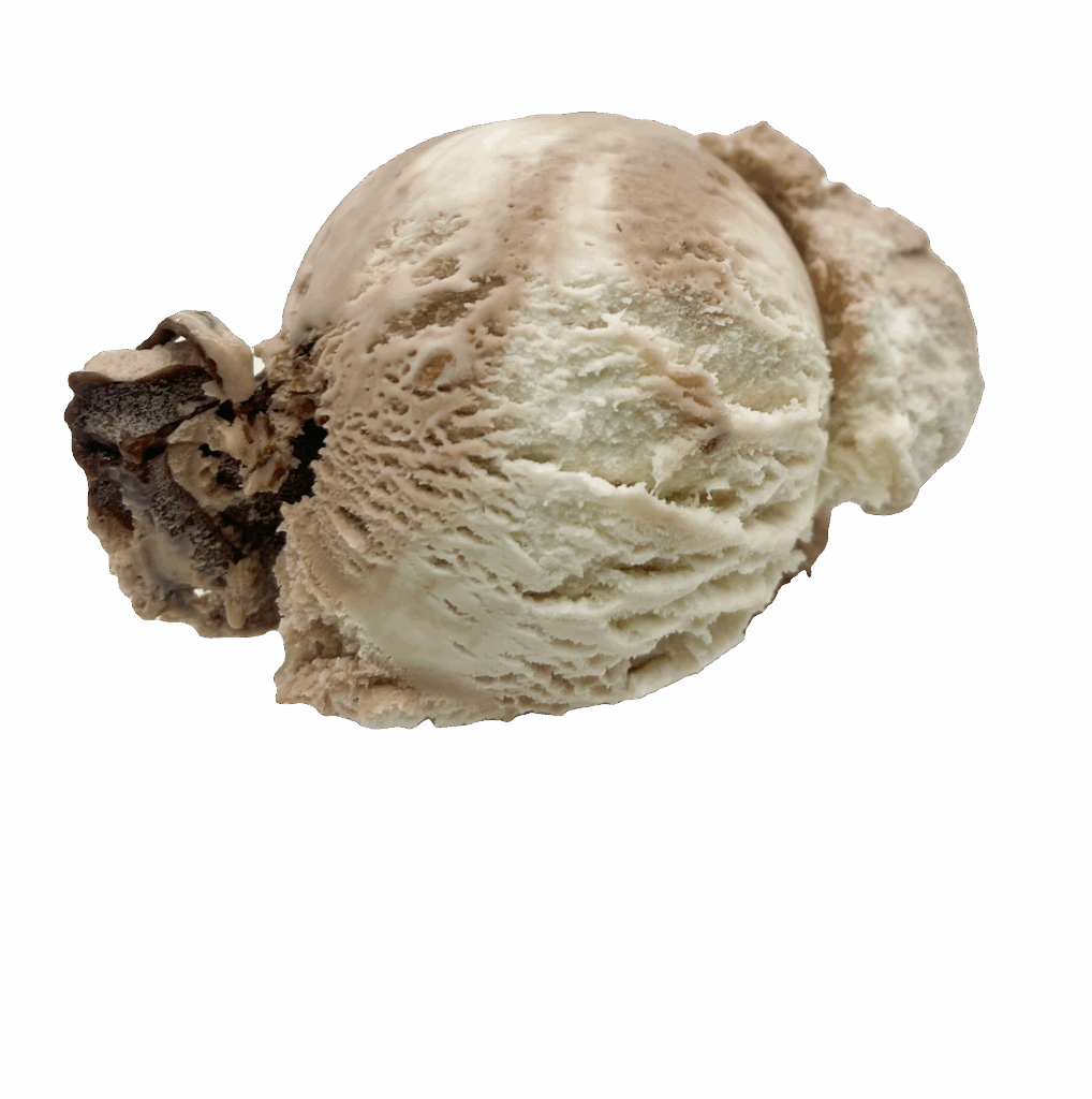 Blueberry & vanilla flavour dairy ice cream with blueberry sauce and white chocolate curls.