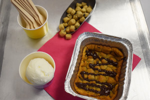 <b>WHEAT</b> Flour (source of vitamins and minerals: calcium carbonate, niacin, iron, thiamine), Sugar, Margarine (Vegetable Oils (Palm, Rapeseed), Water, Salt, Emulsifier: Mono- and di-glycerides of fatty acids, Natural Flavouring, Colour: Annatto, Colour: Curcumin), Brown Sugar, Dark Chocolate Chips (4.0%) (Cocoa Mass, Sugar, Cocoa Powder, Cocoa Butter, Emulsifier: <b>SOYA</b> Lecithin), Water, Invert Sugar Syrup, Free Range Whole <b>EGG</b> Powder, Raising Agent: Sodium Bicarbonate, Salt, Natural Flavouring