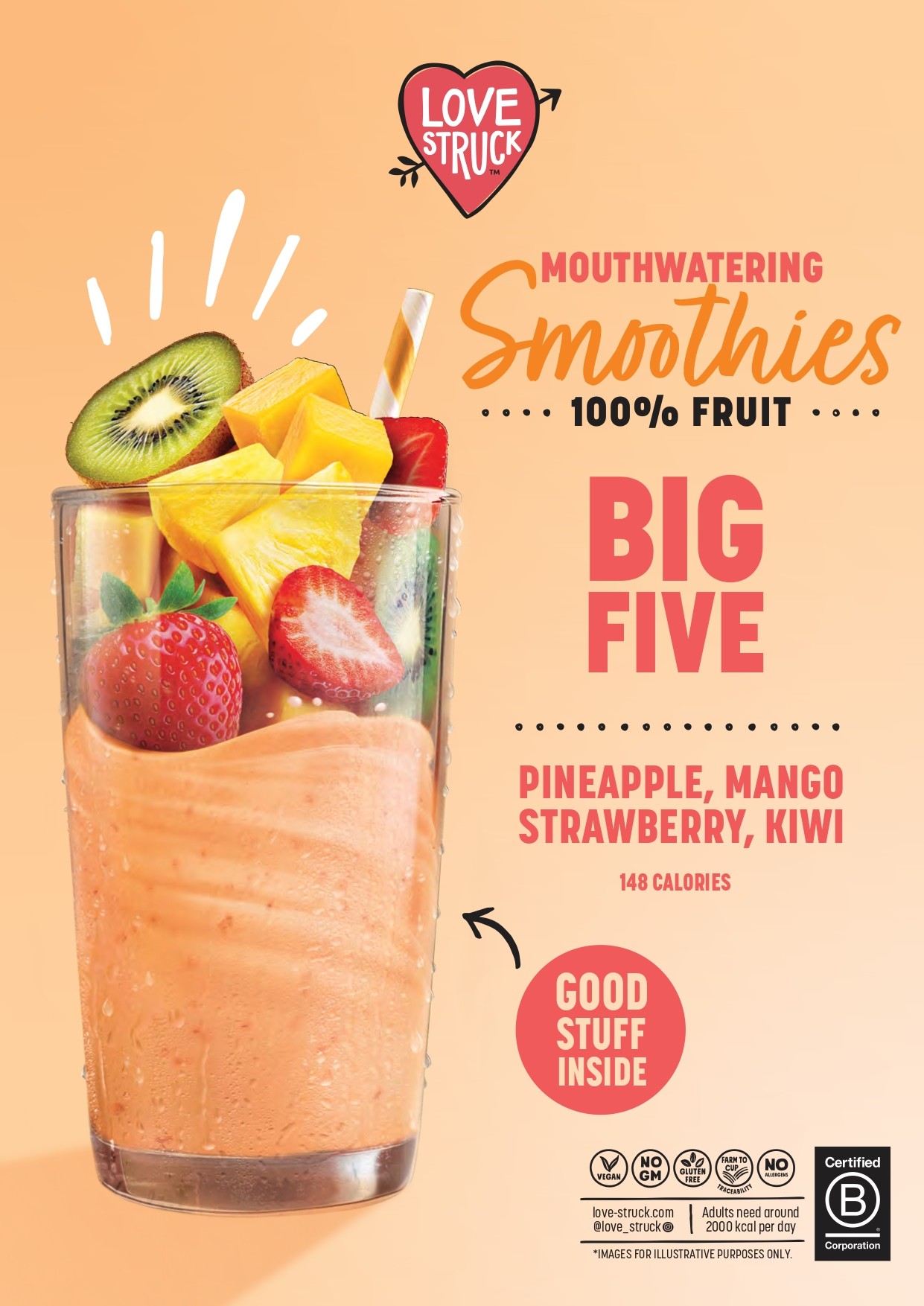 Mix 1 frozen pouch into a blender with 200ml of apple juice and blend for 30 seconds.